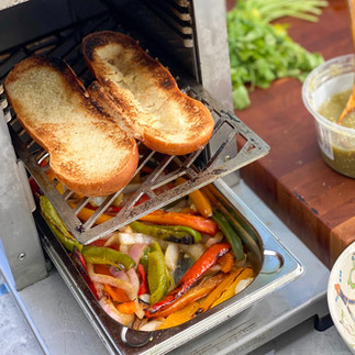 We get this Tartine going with a salsa verde flank steak marinade, with a hint of cumin, and move on to a creamy salsa verde goat cheese spread that you will want to make weekly! And how about that avocado salsa verde topping bringing flavor balance and texture to the robust grilled flank? For the finale, a unique flavor boost is added to the sautéed pepper medley, hello Sam’s Salsa Verde!